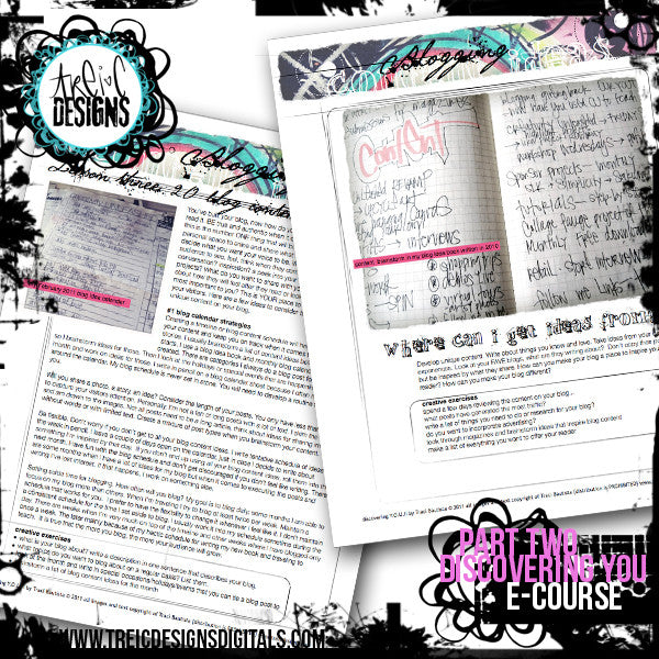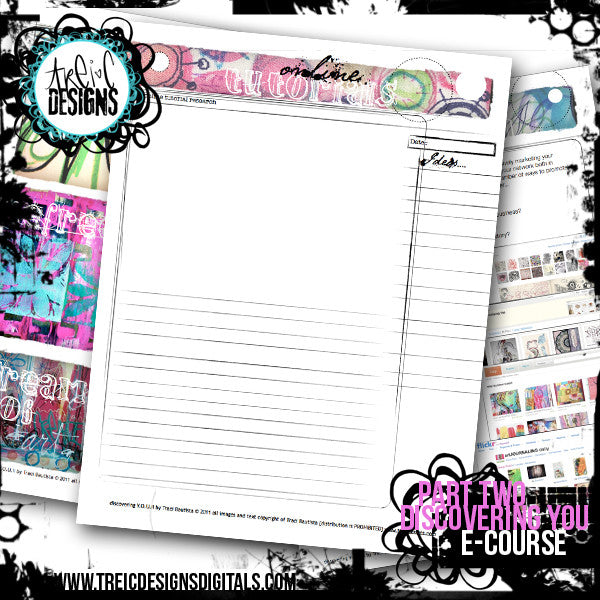 • e-course PDF workbooks - 65 pages of content includes worksheets, journal cards & collage sheets