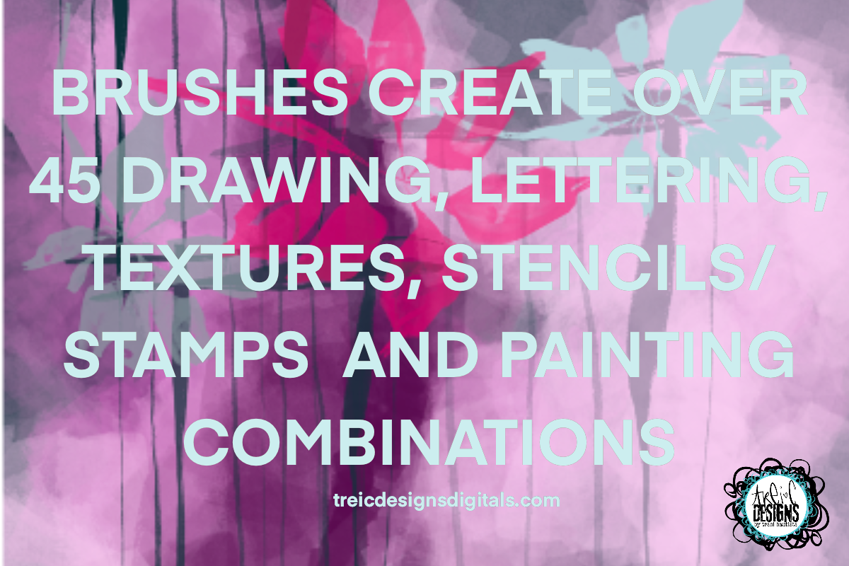 They are perfect for digital art journaling or to use to create surface pattern designs. Use the digital brushes to achieve mixed media stamp and stencil-like qualities in your artwork.