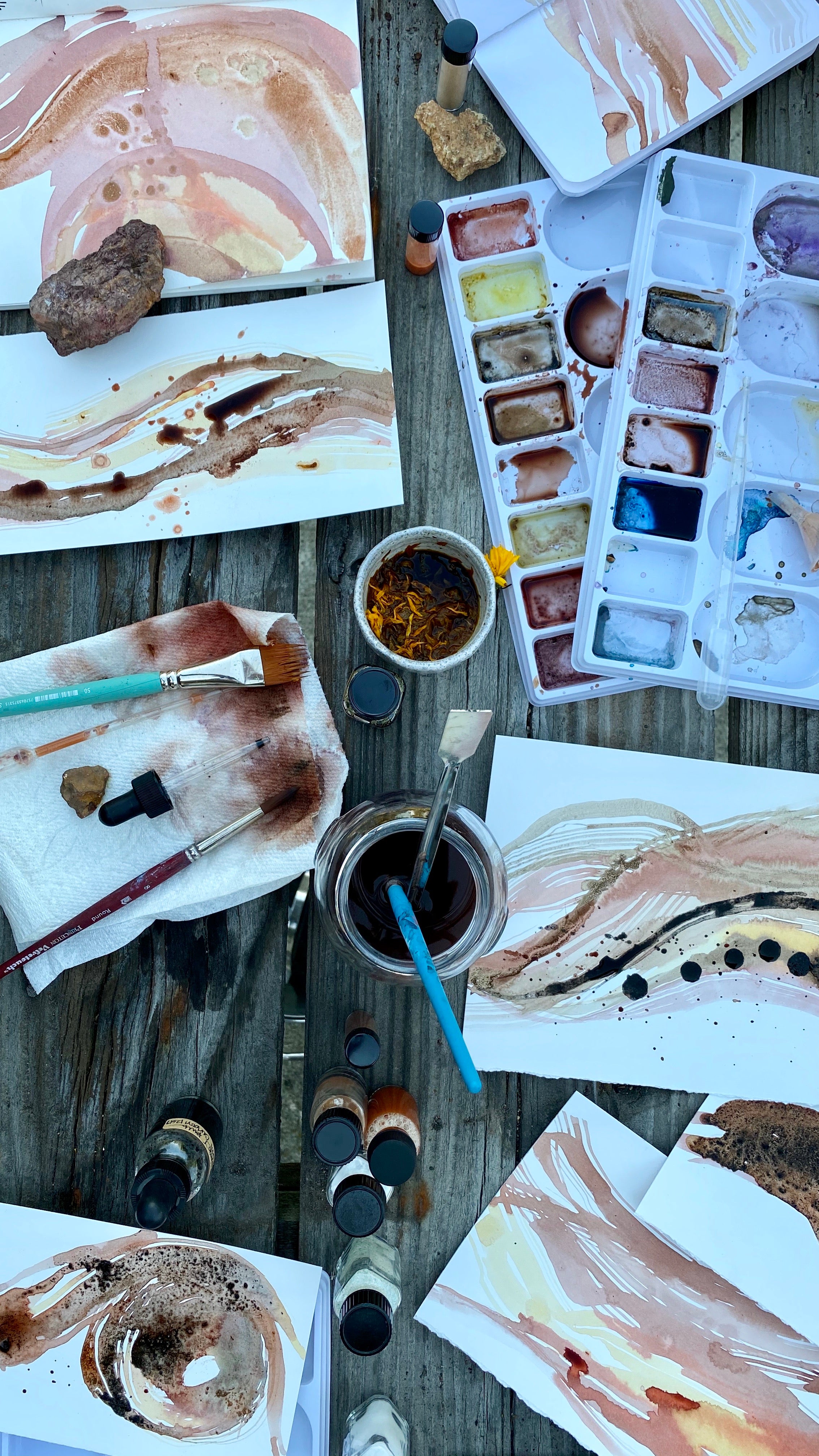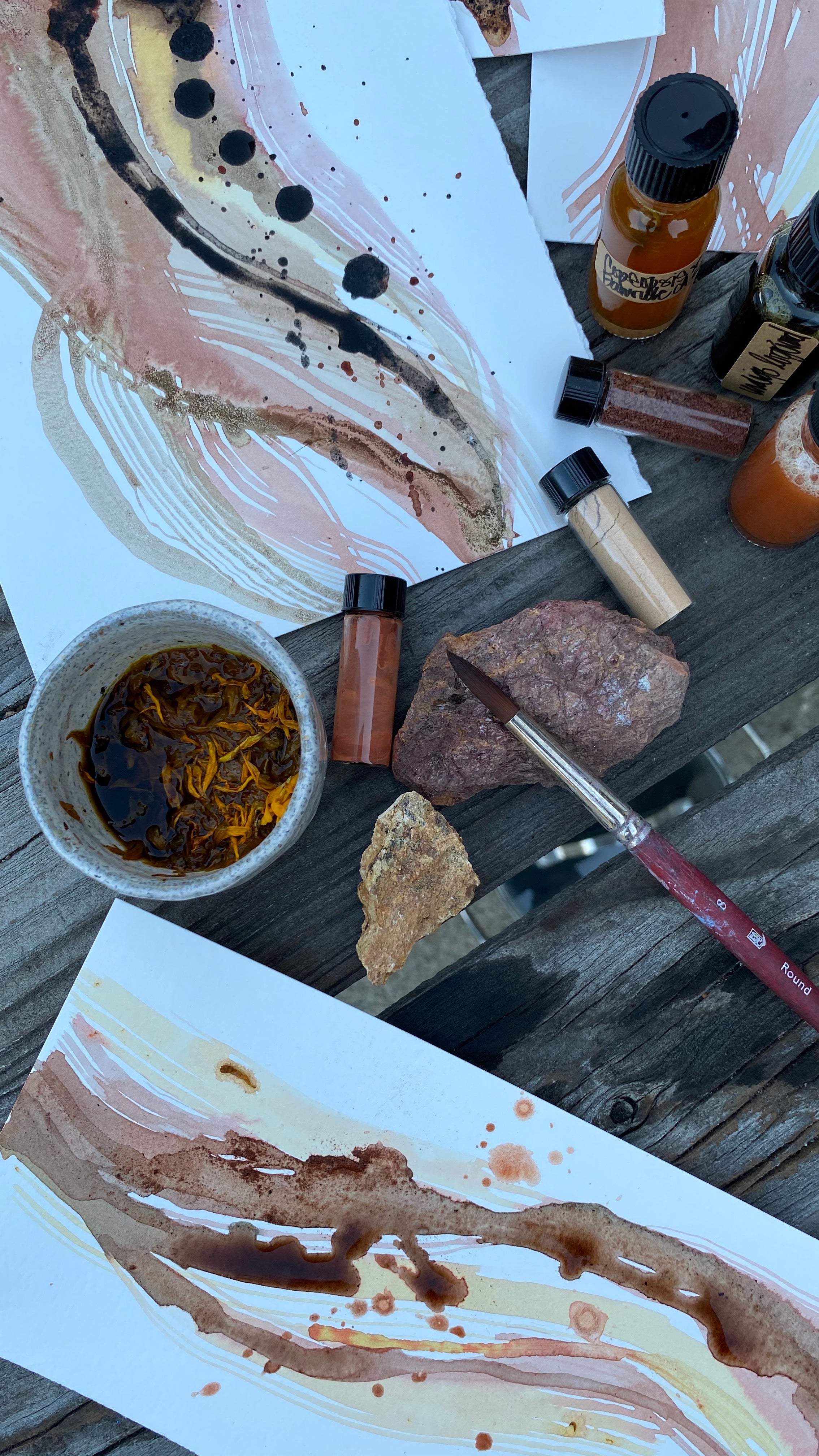 • You will learn how to make a beautiful ink from coreopsis flowers that results in over 8 different colors! From ONE flower, it’s amazing. PLUS how to turn rocks into gorgeous ink. I provide many ideas and examples of various natural botanical ink recipes.