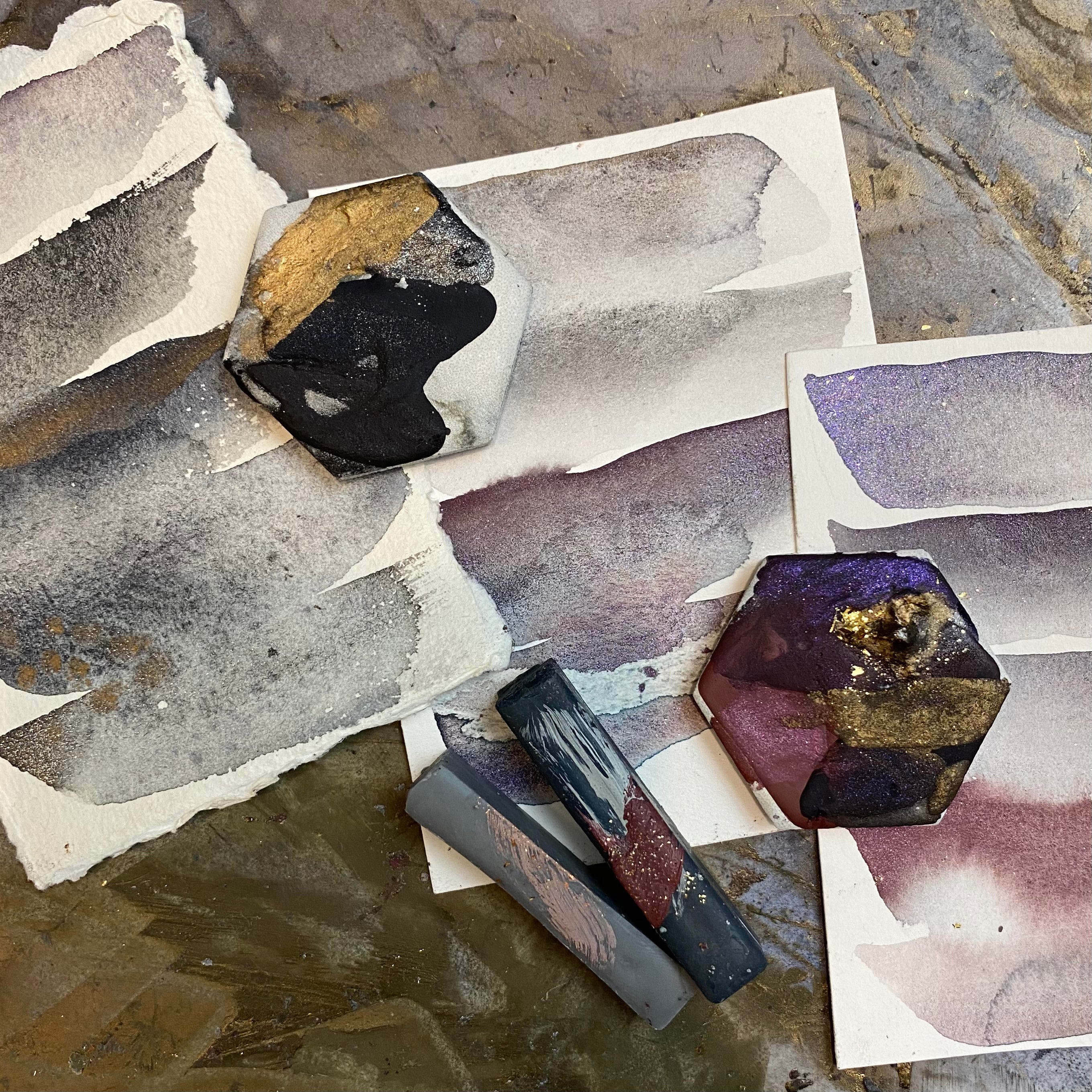 You'll receive a beautiful package full of handcrafted watercolor in a thematic color palette...perfect for your art journal or sketchbook. And great for WATERMEDIA PLAY AND FLUID ART techniques.