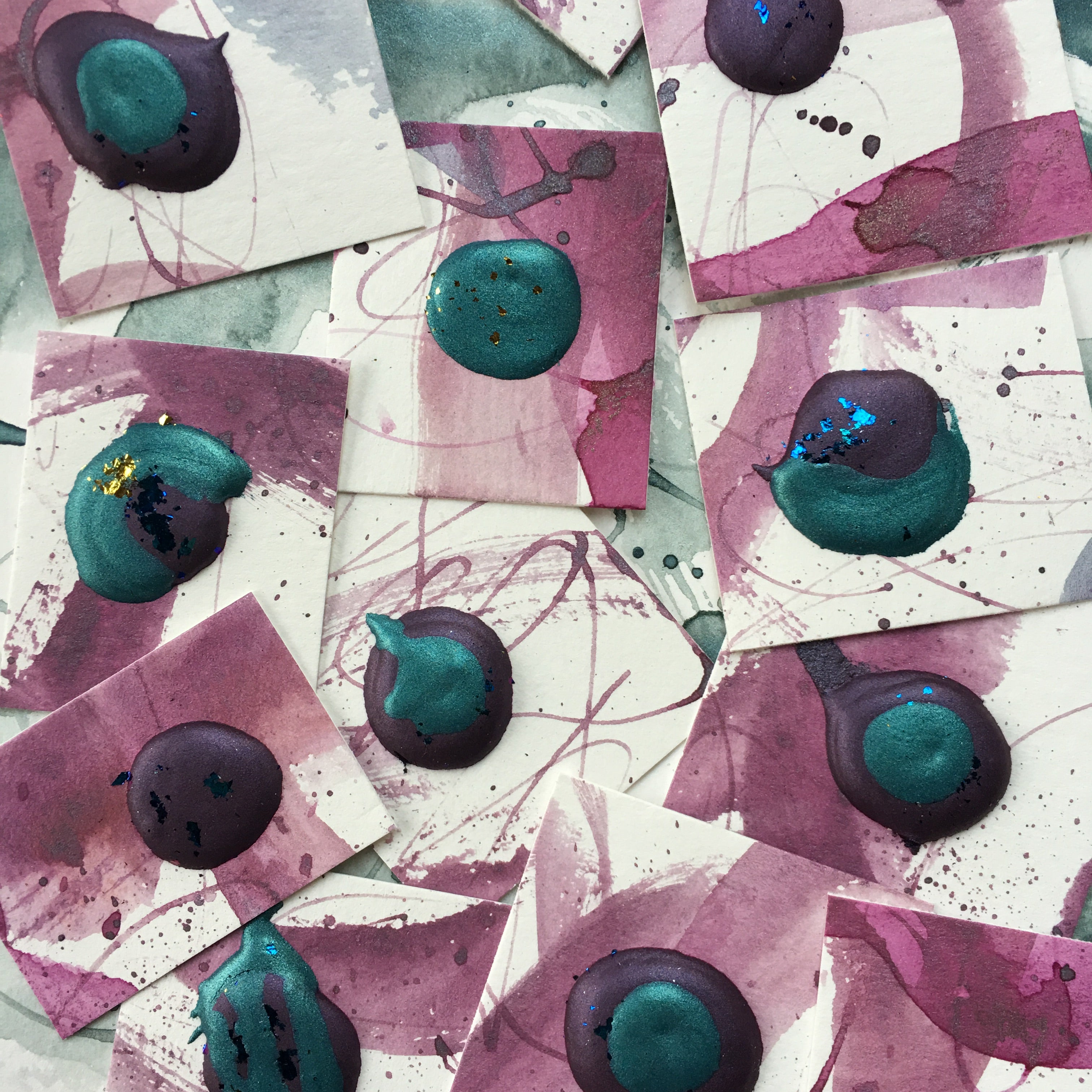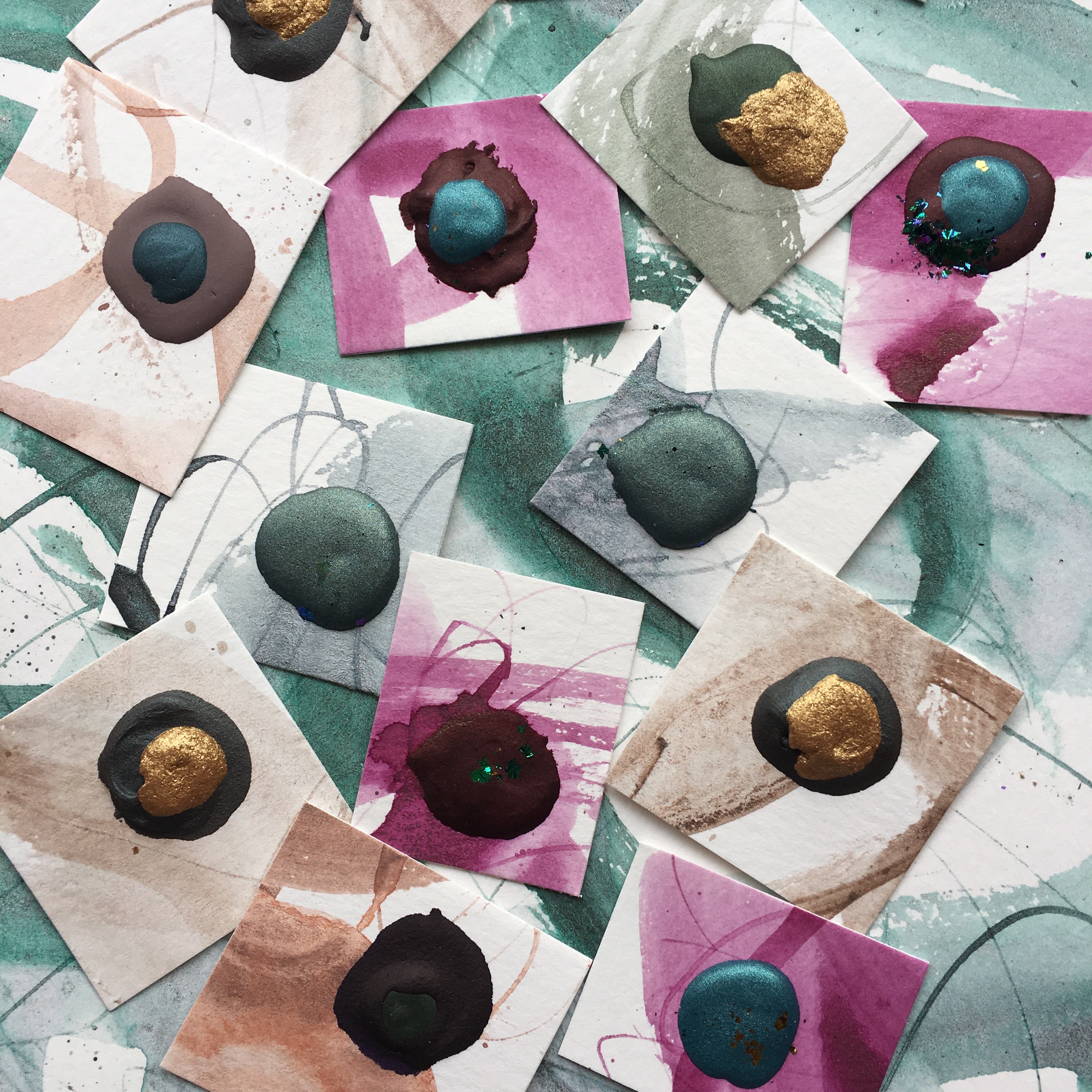 This collection includes THREE XL hand painted watercolor dot & swatch cards. Each handmade color is carefully mulled on a marble slab to create a rich textured granulating watercolor paint. This is a perfect way to try out a variety of Traci's handmade paints.