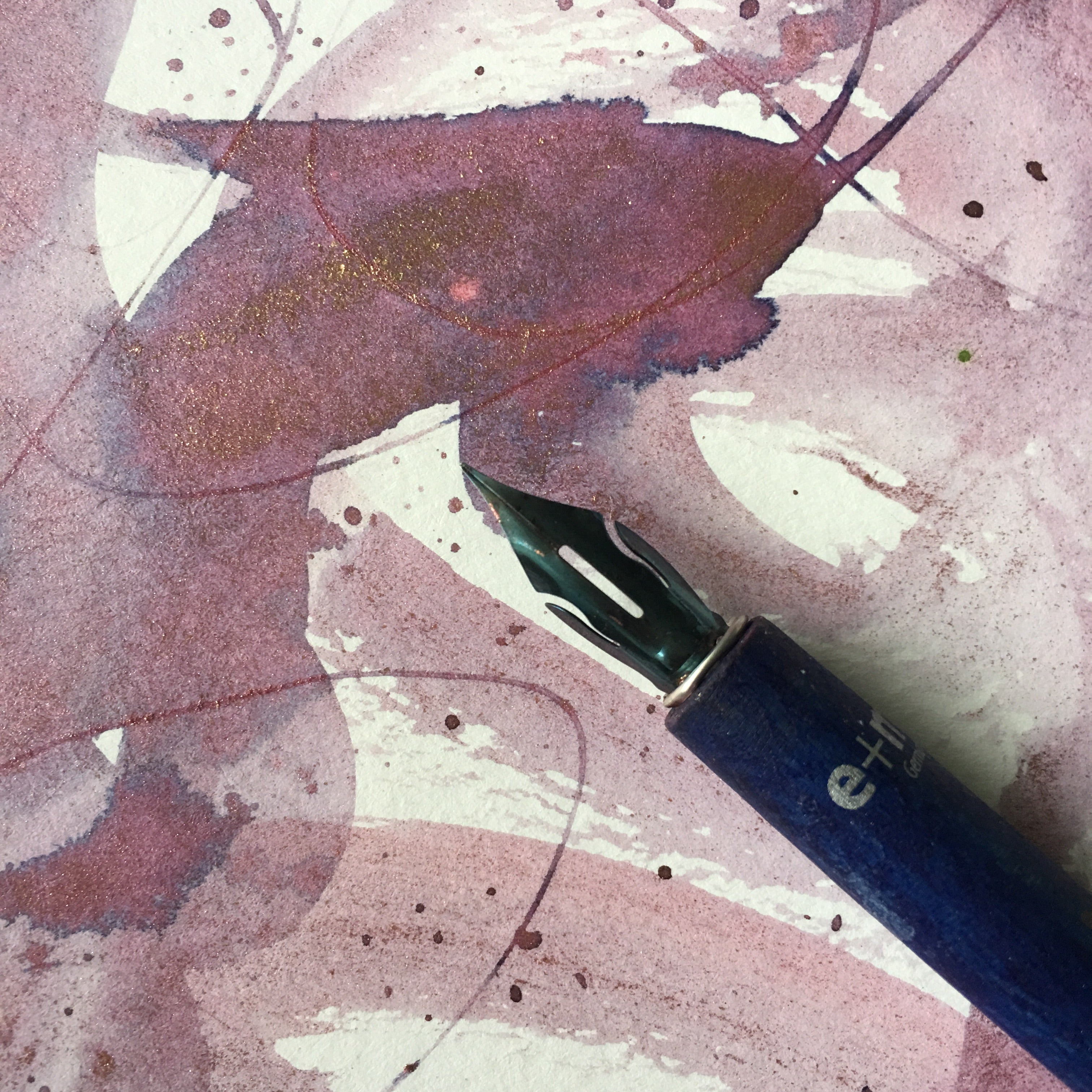 This collection includes THREE 4ml bottles of handmade artisan inks in wide mouth bottle {perfect for dipping calligraphy pen}, ONE reactive crystals pan + TWO ink tools