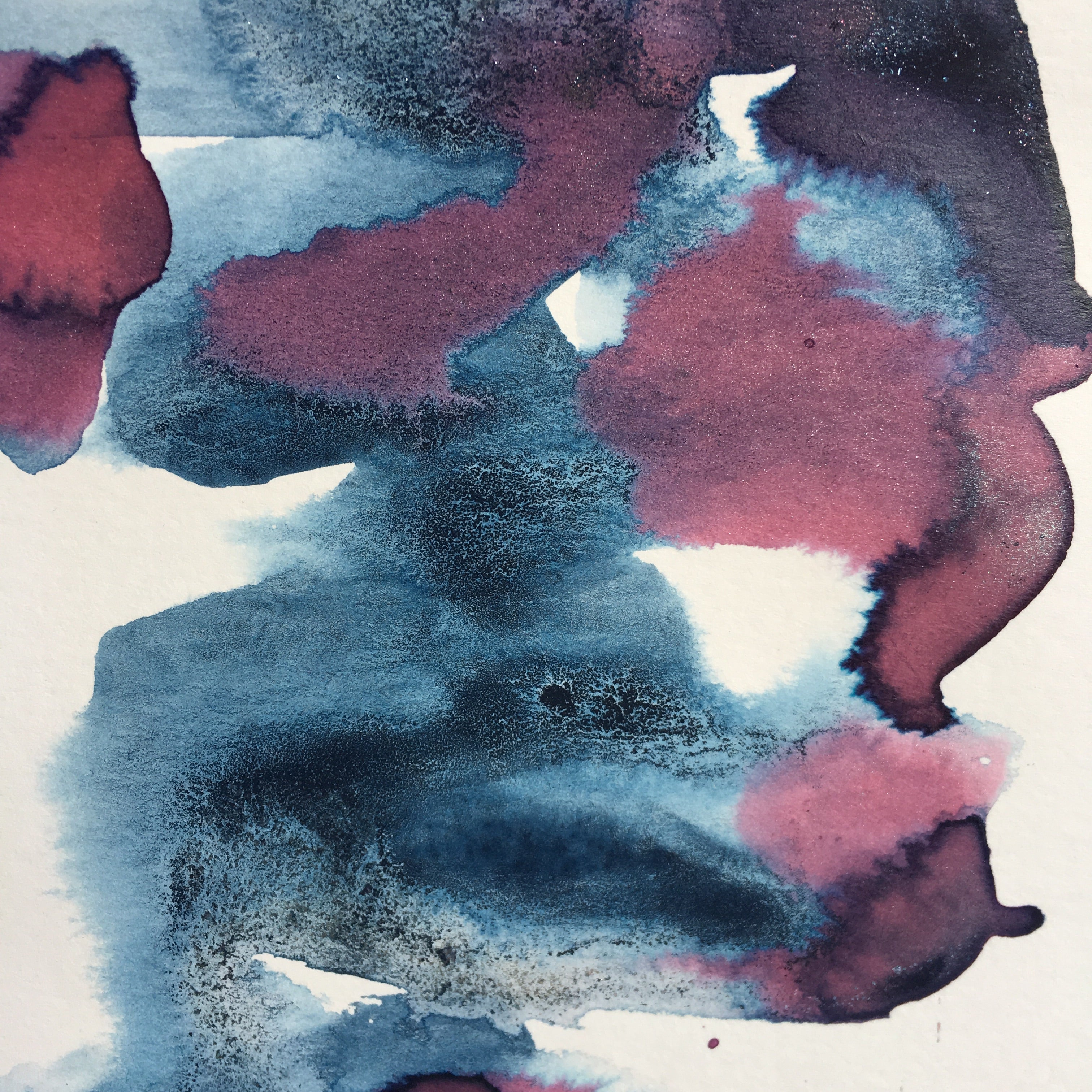 The colors create a number of textured effects depending on the substrate, type of paper and the amount of water used when they are applied. The magic unfolds as the colors dry and the pigments start to separate. The colors have a luster when light gently hits the surface and some have a slightly gritty texture.