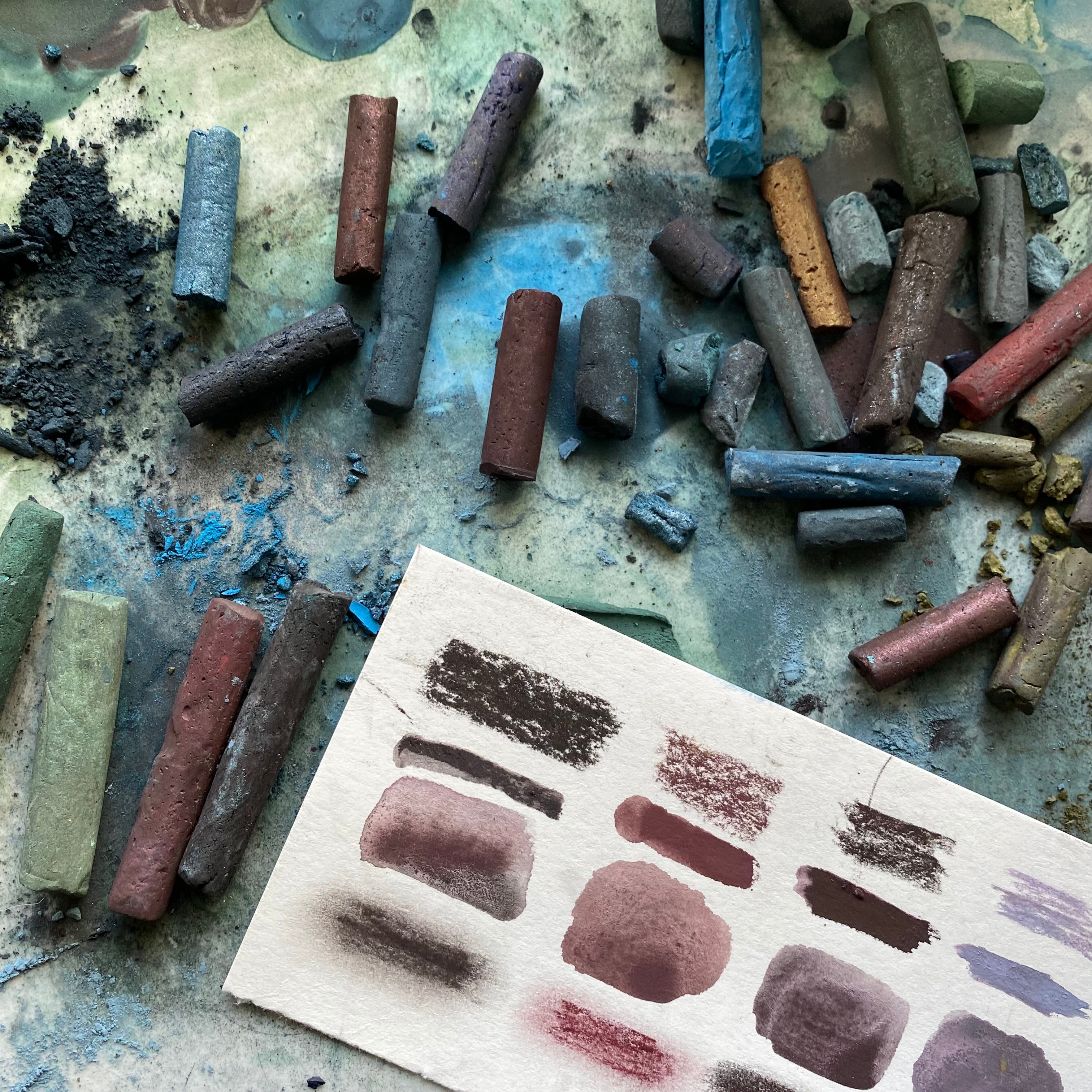 NOTE: the photos are ONLY samples of the drawing sticks. Due to the unique handcrafted manufacturing process of this product, the sizes of the drawing sticks may vary and the color swatches in the photos may be different from monitor to device. Colors are created in small batches which results in each set being slightly different from the next batch. Gloves are recommended when working with the drawing sticks.