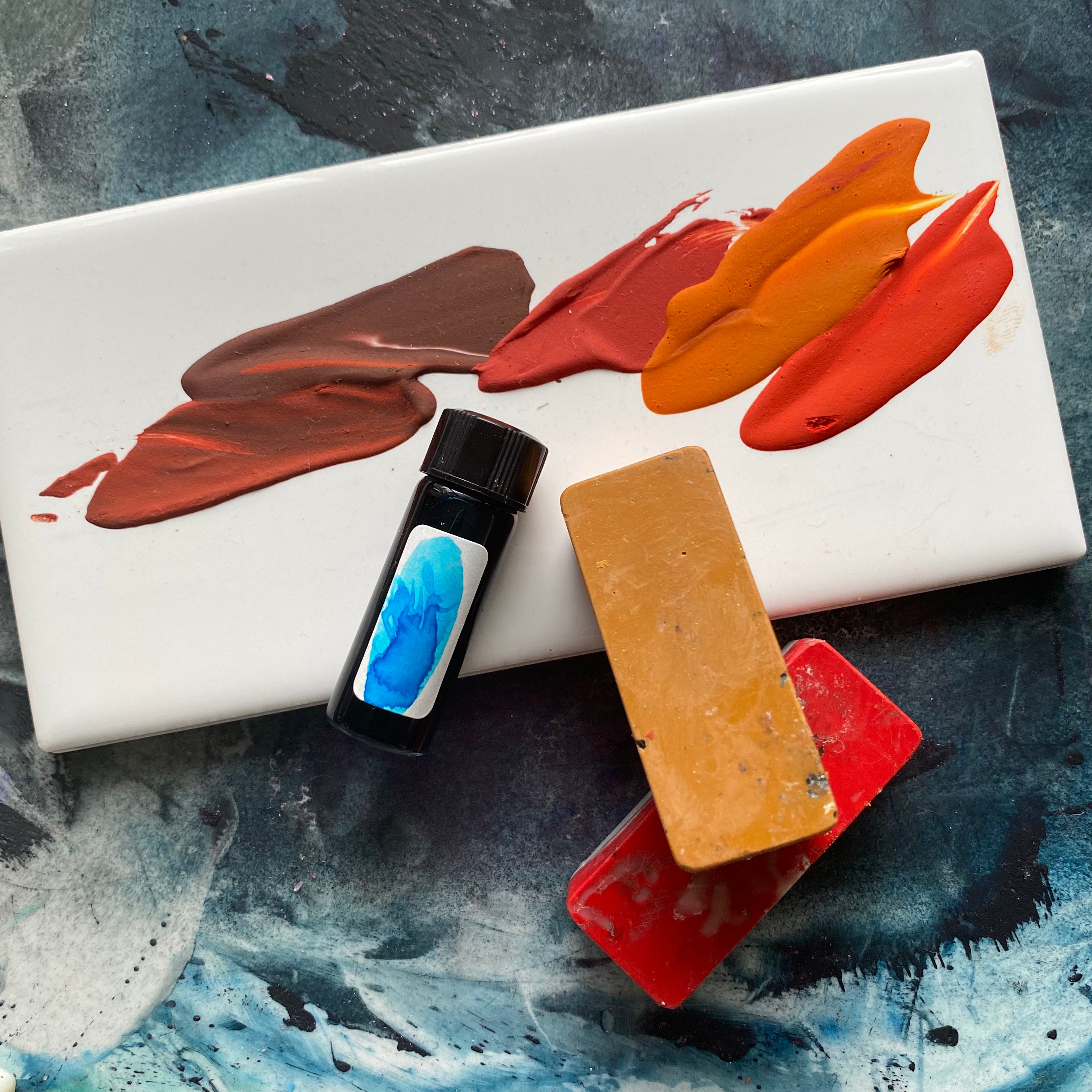 Having the paints on a tile creates a way to use larger brushes and mix the colors on a palette. If you’ve wanted to experiment with my highly pigmented colors, this is a perfect way to sample my handcrafted watercolors.