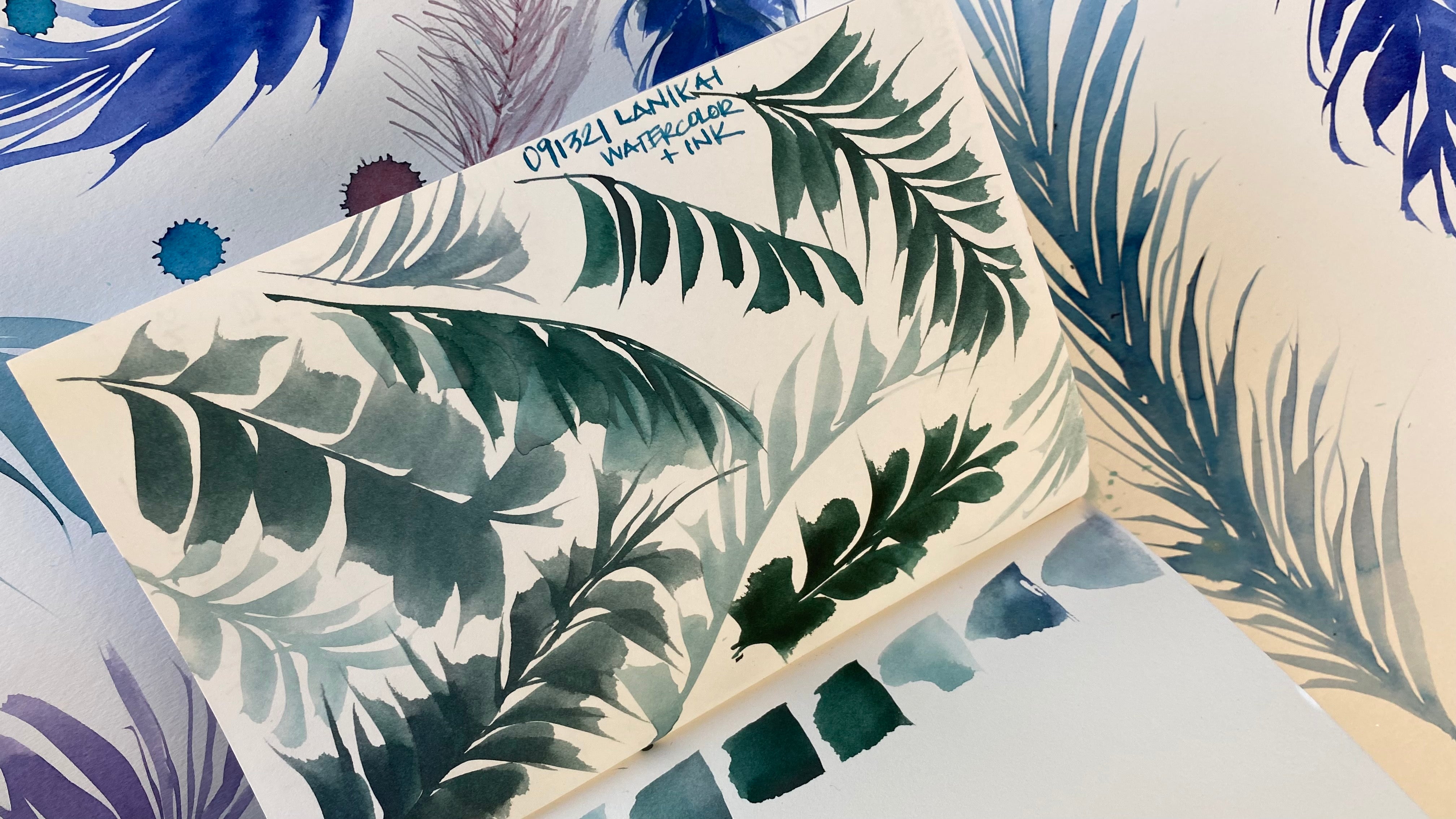 LANIKAI collection colors: The collection is a gorgeous mix of deep blue hues from baby blue skies to glistening golden turquoise, vibrant shimmering purples, sunrise orange, palm frond greens, cloudy grays, and coconut browns. They create a beautiful color range when you mix the inks & paints🎨