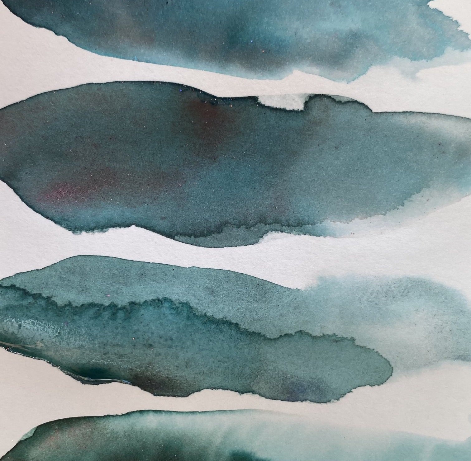 The colors create a number of textured effects depending on the substrate, type of paper and the amount of water used when they are applied. The magic unfolds as the colors dry and the pigments start to separate. Some colors have a luster when light gently hits the surface and some have a slightly gritty texture.