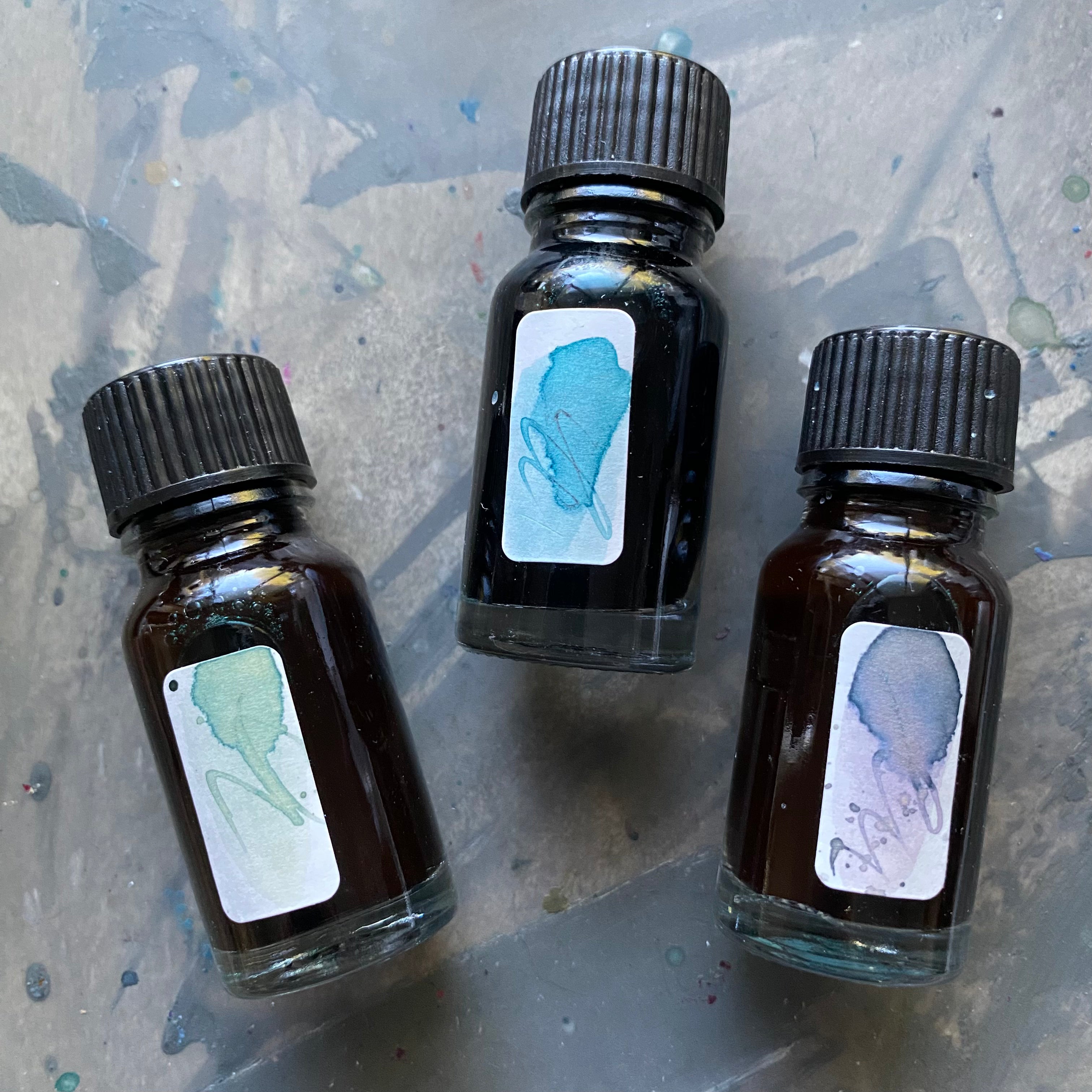 • This collection includes THREE artisan inks in glass bottles with hand painted labels