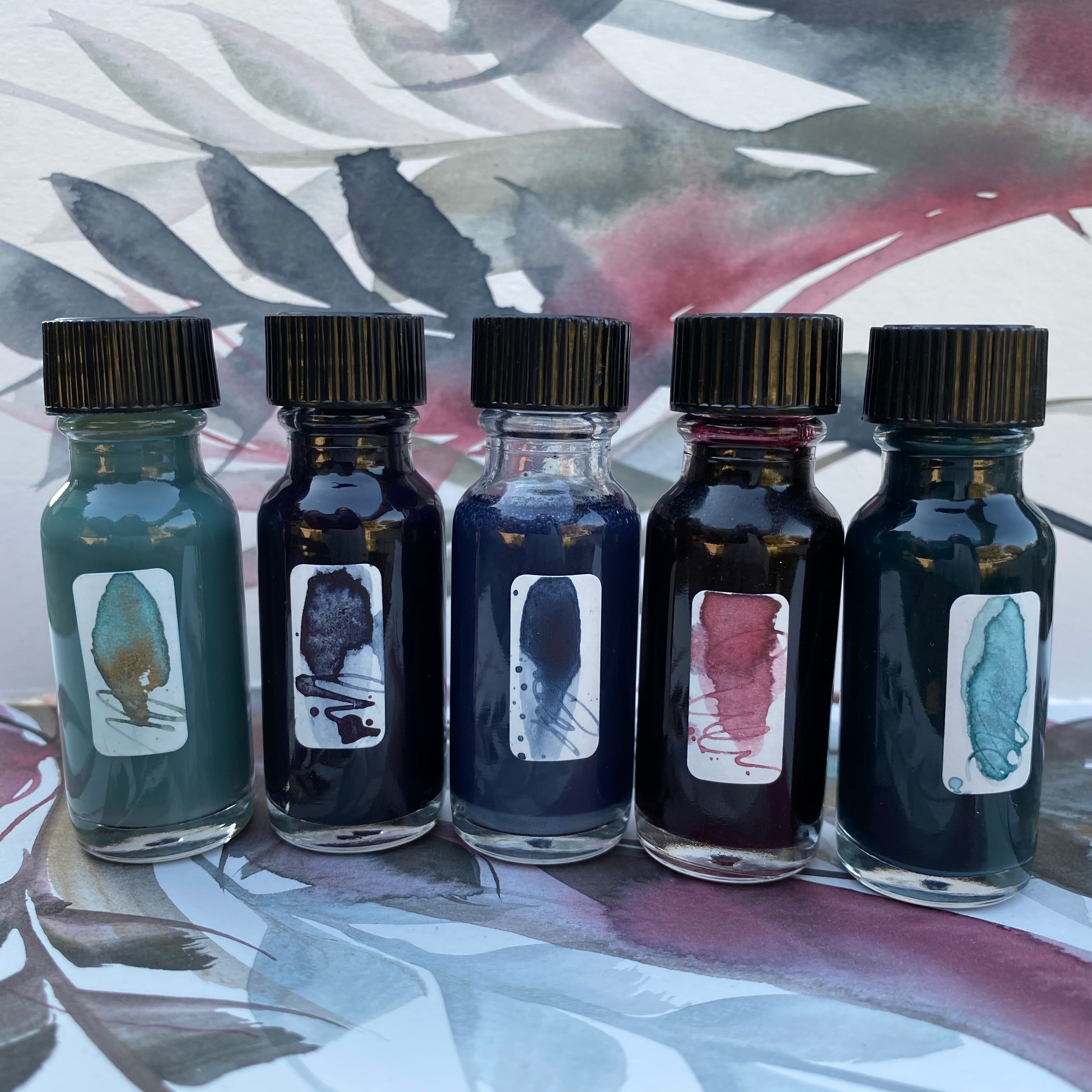 COLOR PALETTE:SUNRISE STUDIO collection handcrafted artisan ink + watercolor collection includes...inspired by the colorful fall foliage and whispering hues explored during th fall. It’s a mix of an autumn festival with a pop of Autumn florals . This collection includes FIVE artisan inks.
