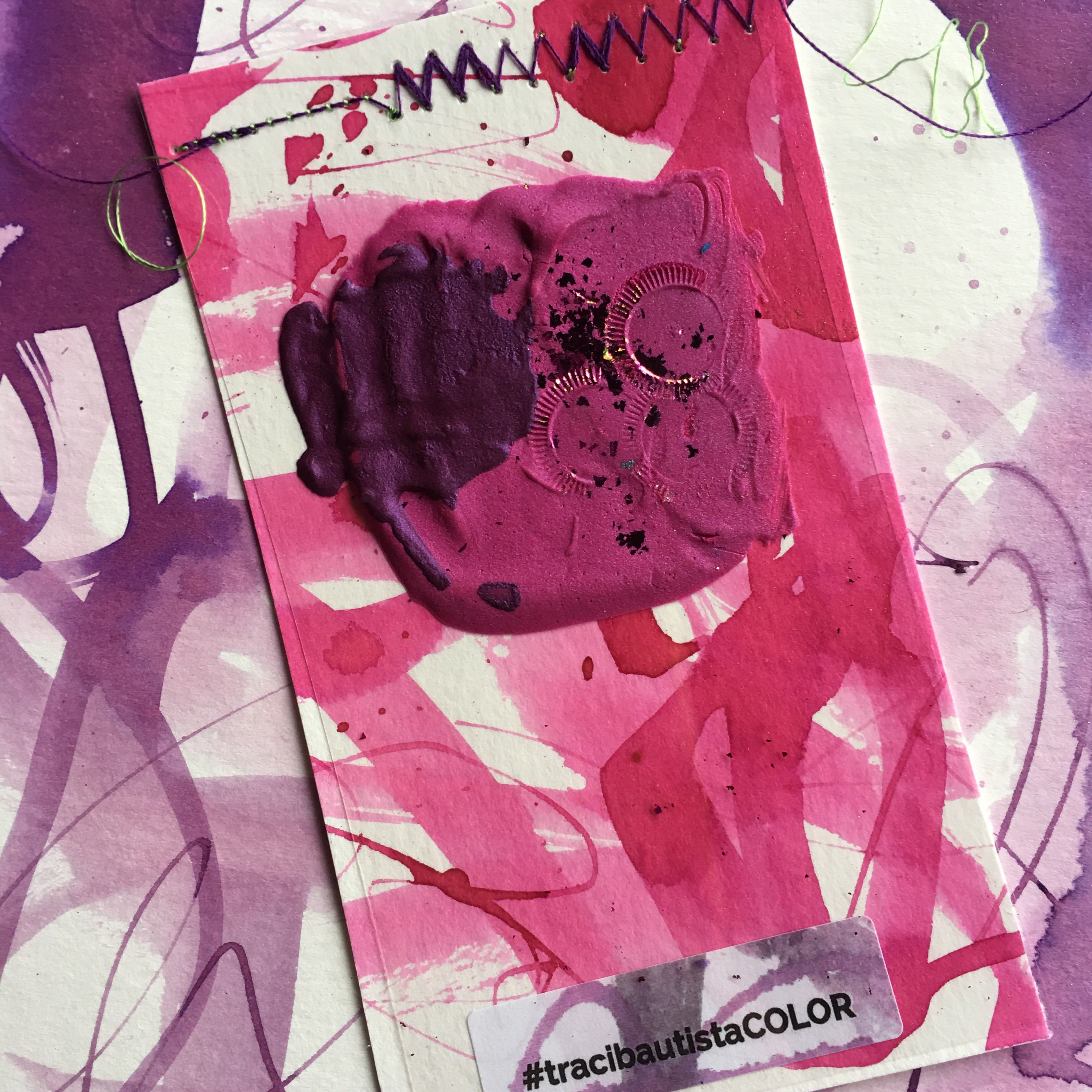 The limited edition, one-of-a-kind palette cakes are multi-layered watercolors presented in a flat XXL cake on a large piece of wet media Duralar stitched or stapled to a hand painted Strathmore Watercolor or Mixed Media swatch card. The Duralar is a perfect mixing palette and can be reused or recycled.
