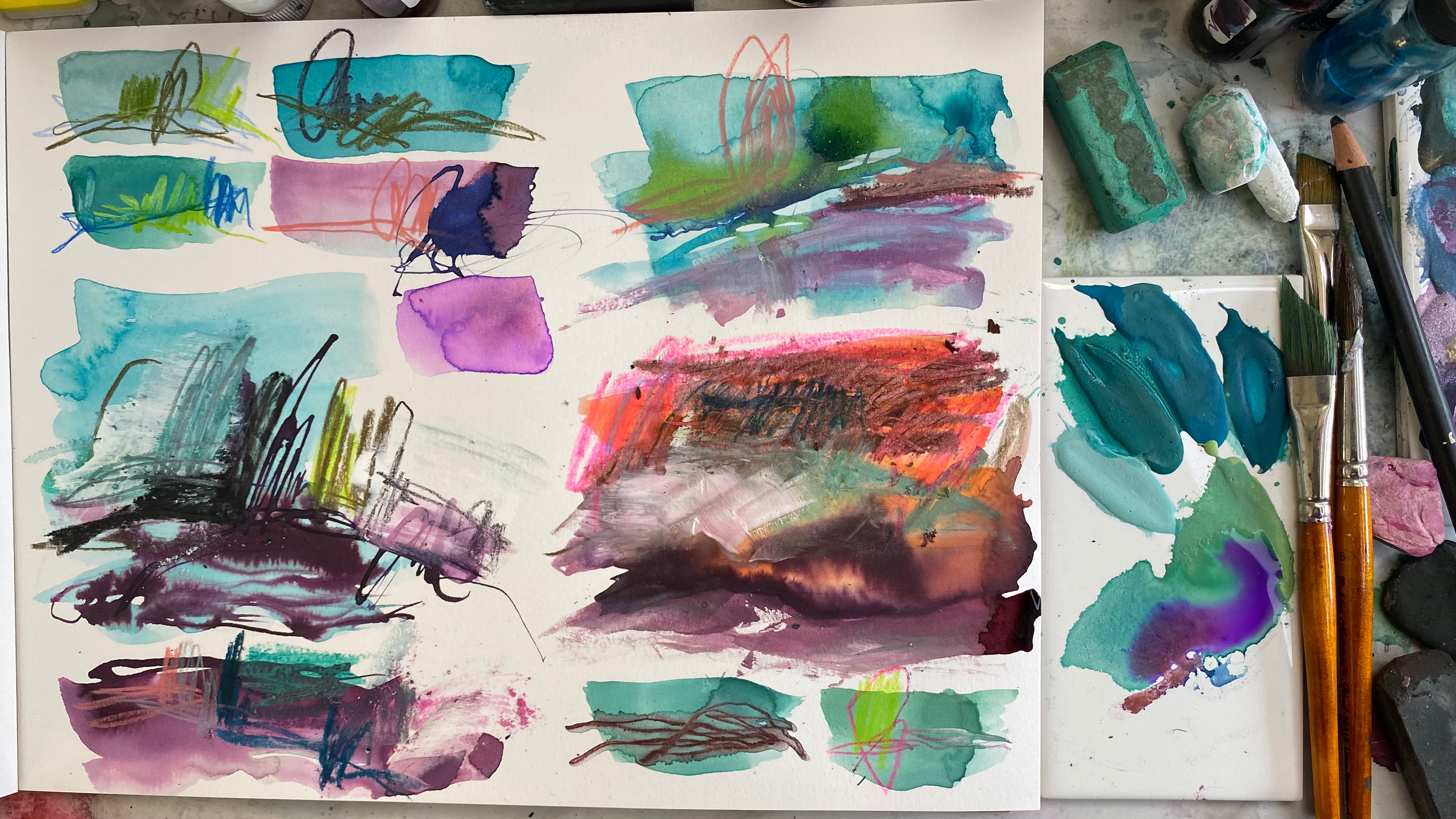 You'll receive a beautiful package full of handcrafted watercolor in a thematic color palette...perfect for your art journal or sketchbook. And great for WATERMEDIA PLAY AND FLUID ART techniques.
