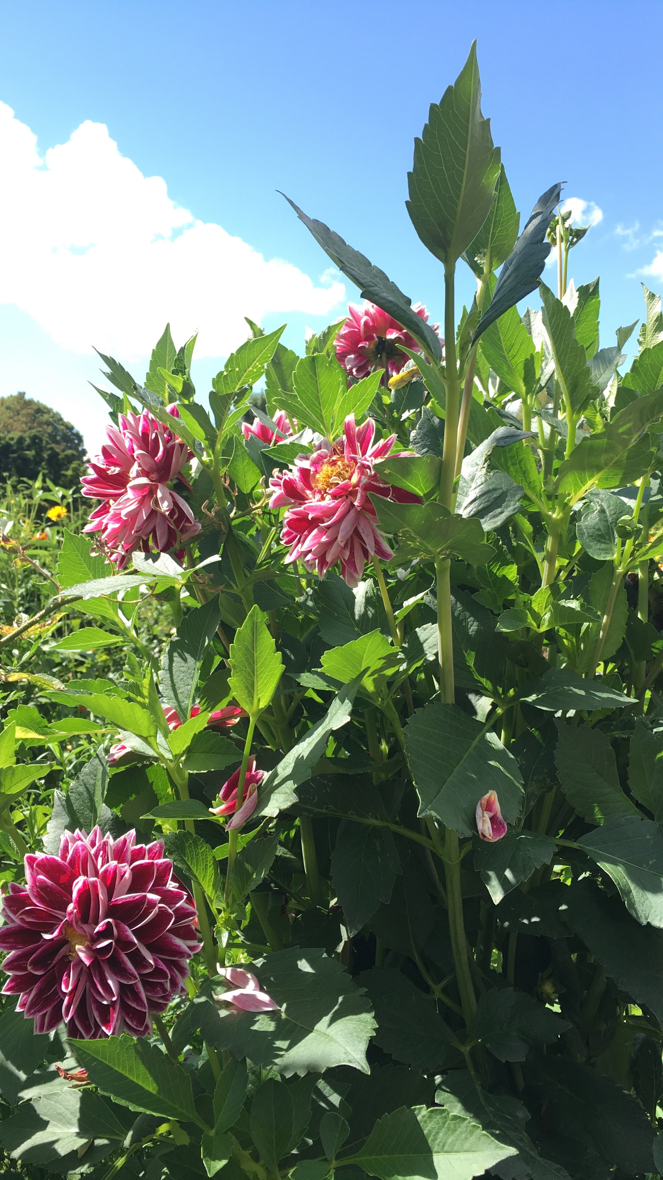 zinnias, celosia, & dahlias mingle