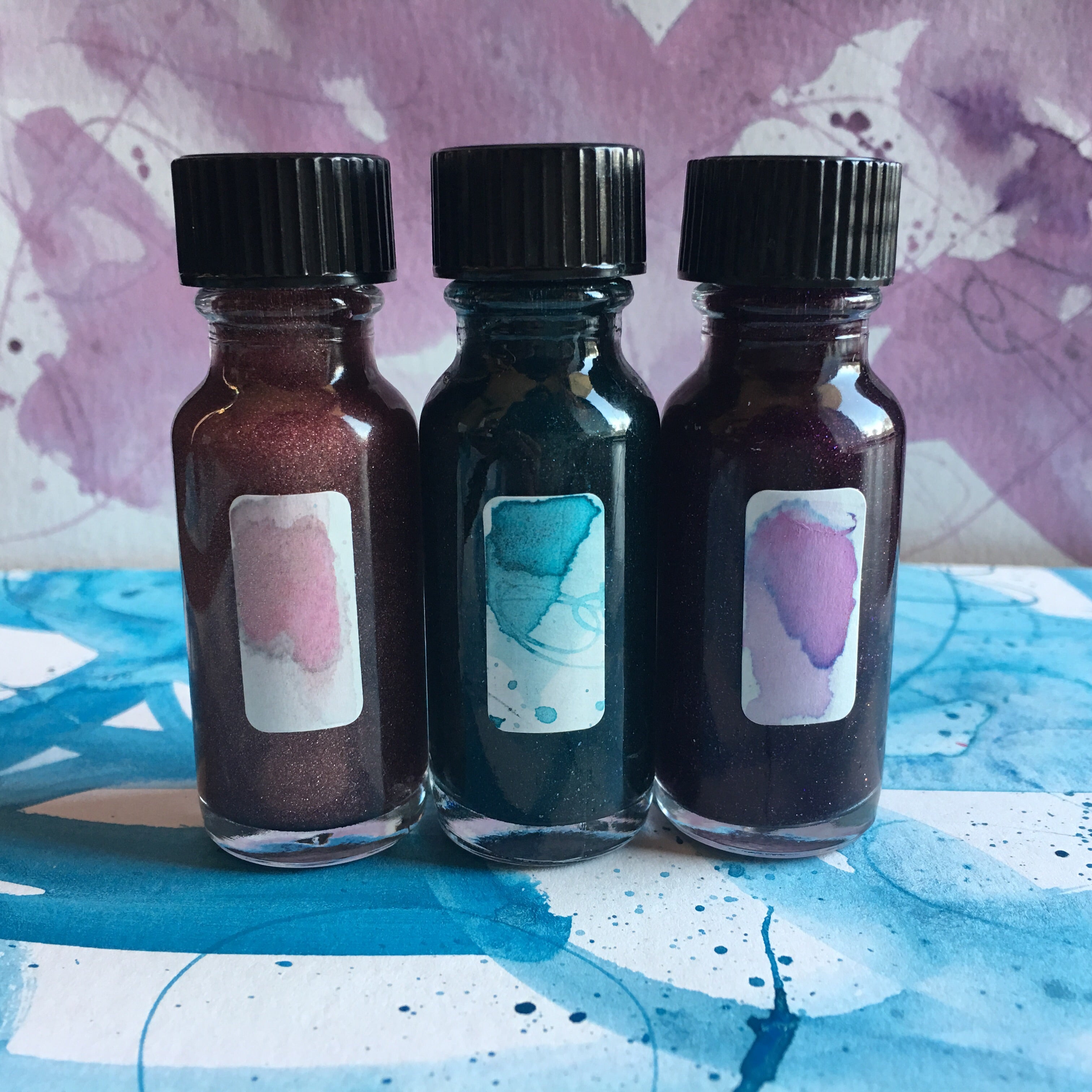 • THREE handcrafted 15ml artisan watermedia inks {misc colors}
