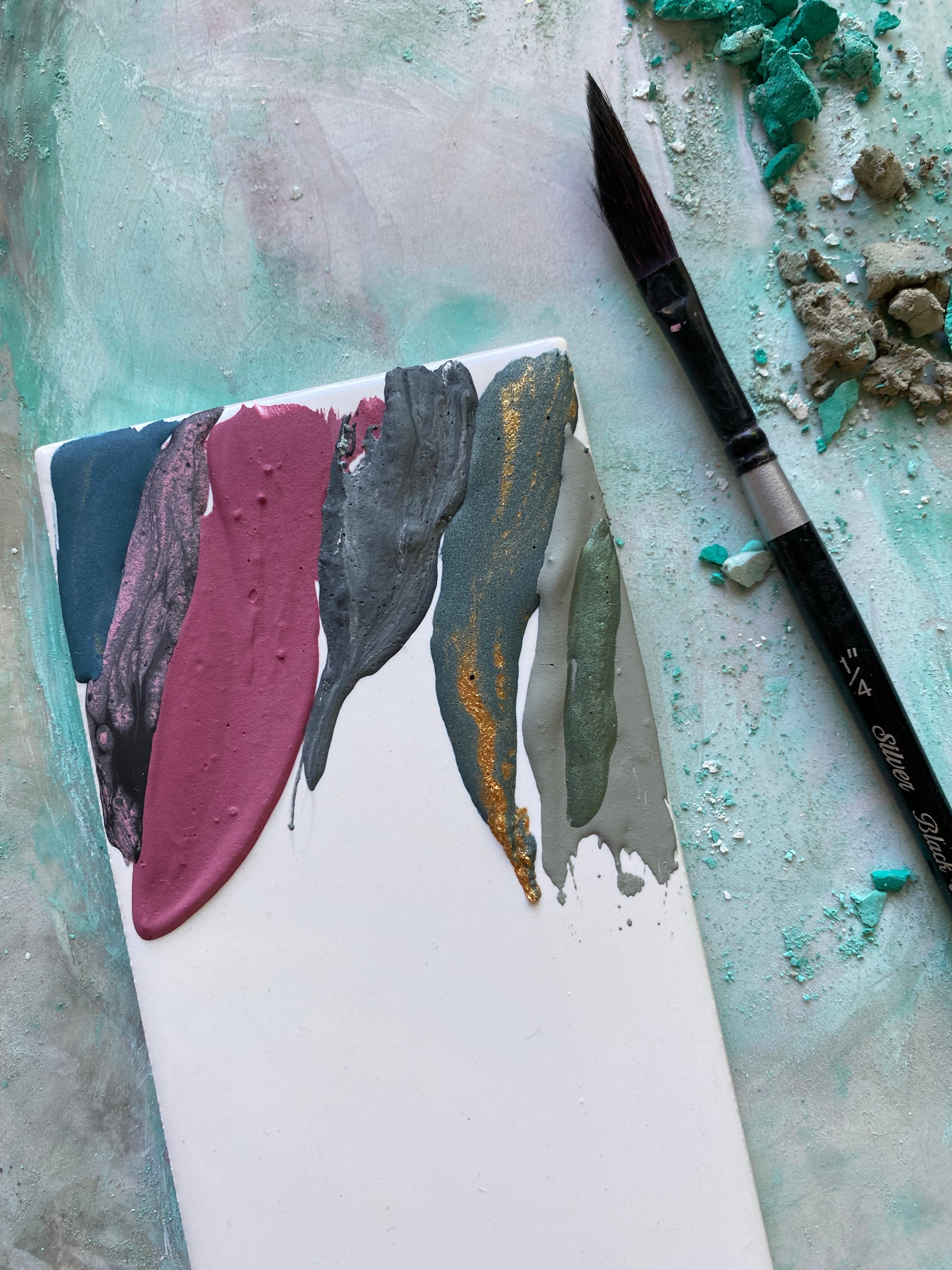 Most of my paint collections have a range of 10-15 colors since they are made in very small batches. I started creating these swatch tiles as a way to save each color as I made the collection for my own personal use.